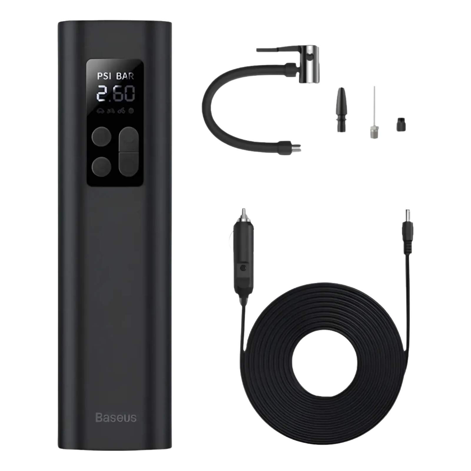 – El Baseus es el aliado perfecto para tu vehículo. Un compresor compacto, potente y totalmente automático que cabe en tu guantera.